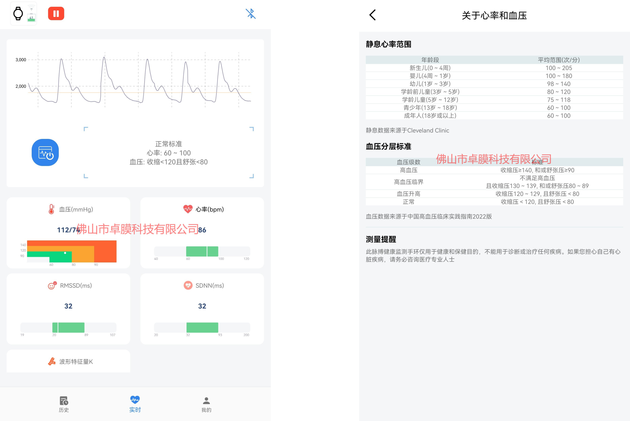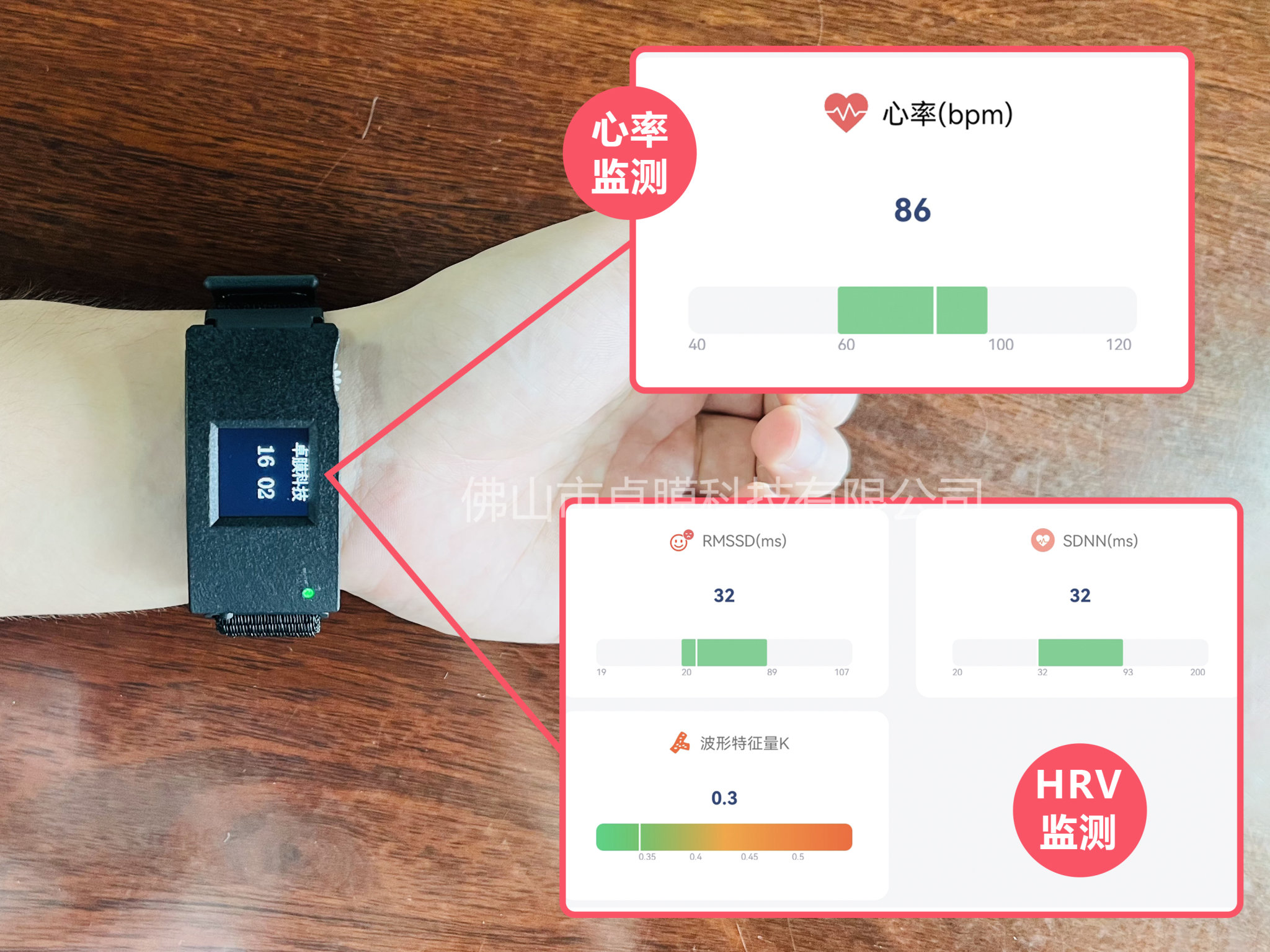 同时,这款手环还能够测量心率变异性(HRV)。通过分析脉搏波形,即可计算出RMSSD、SDNN等关键数值。HRV是反映自主神经系统平衡状态的重要参数,精准且易于理解的HRV测量结果可以帮助我们及时发现并预防潜在的健康问题,如压力过大、睡眠质量不佳等。