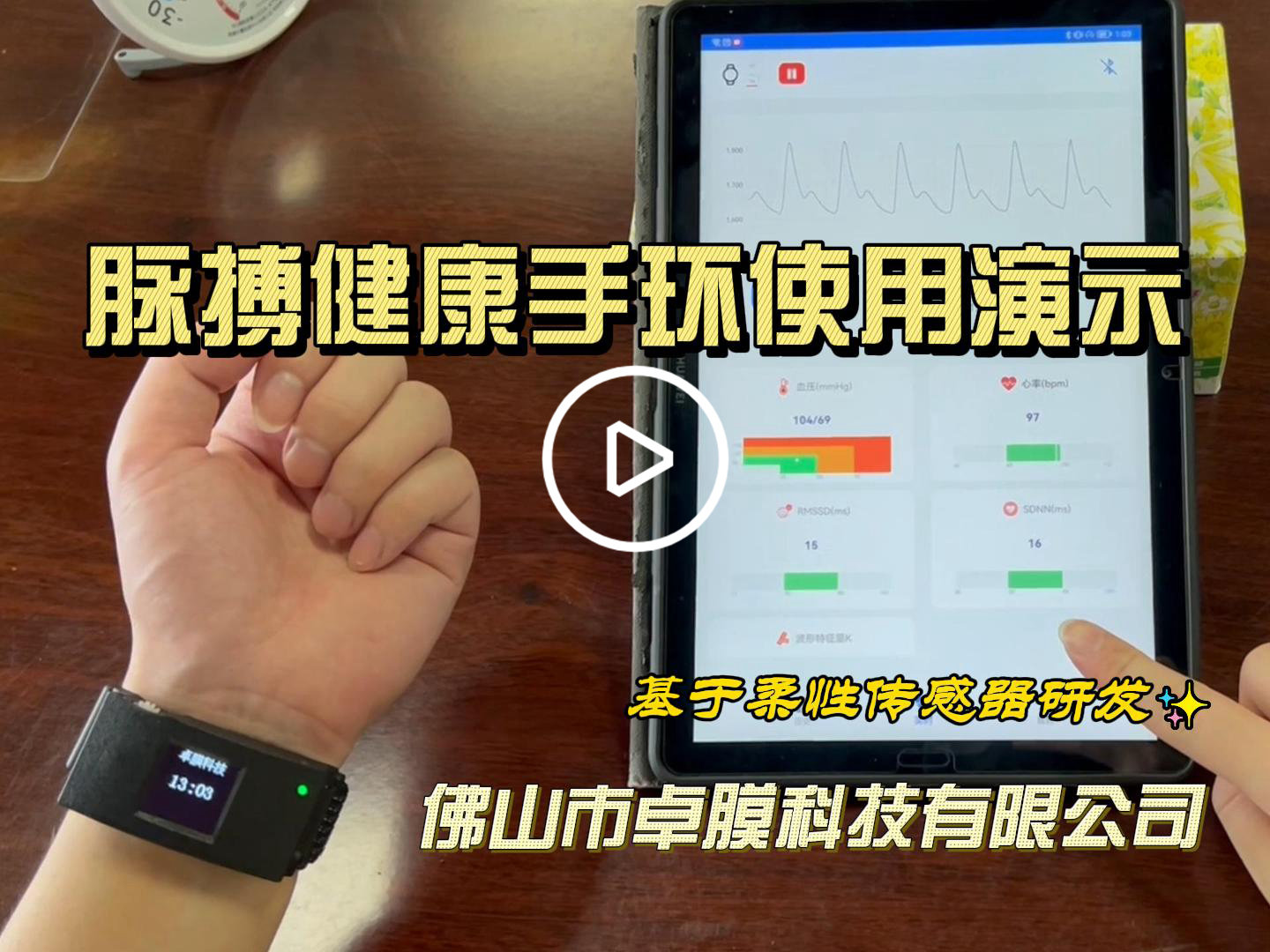 卓膜科技健康手环(见图1)是通过自主研发的柔性传感器采集人体脉搏波信号,结合先进的信号处理技术和机器学习算法,从而实现对血压以及多项健康指标的精准测量。在血压测量方面,相比传统的血压计使用更便捷,相比市面上可穿戴健康监测设备的测量准确度和稳定性更具优势。