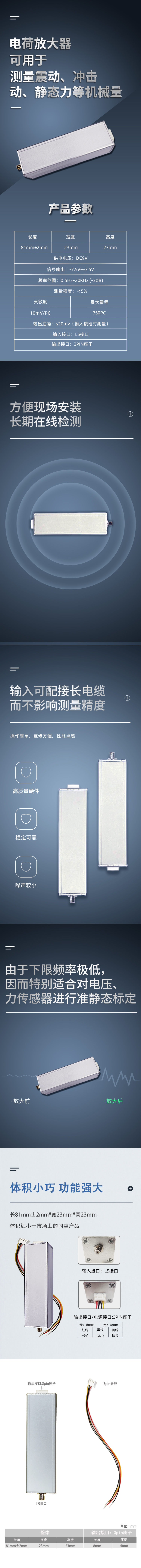 电荷放大器具有操作简便、维修方便、性能好、高质量硬件、稳定可靠、噪声较小等特点。